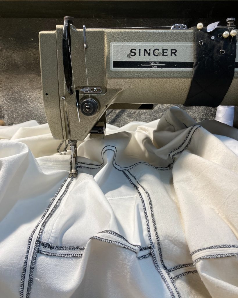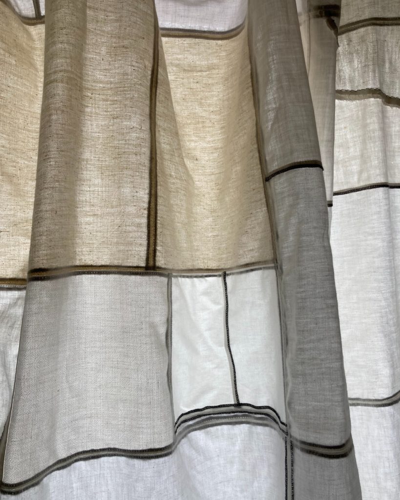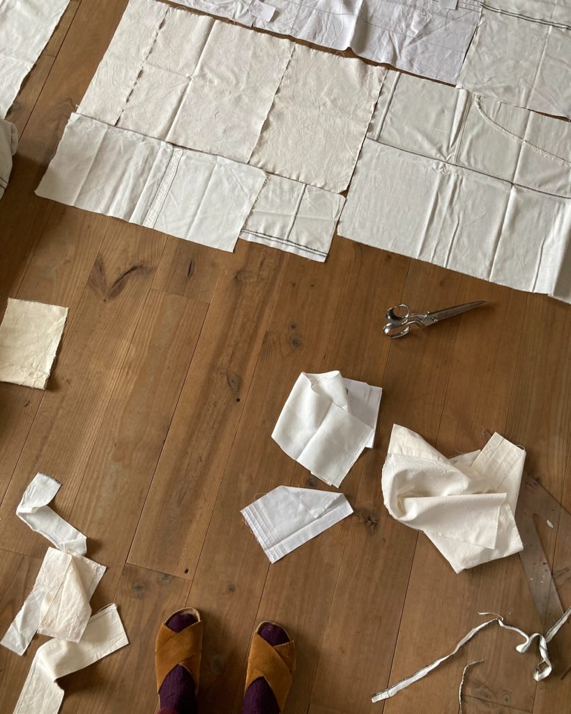 Le choix des tissus, le patronage, la composition des nuances de blanc, l’assemblage sont les étapes qui permettent de construire un ensemble cohérent.